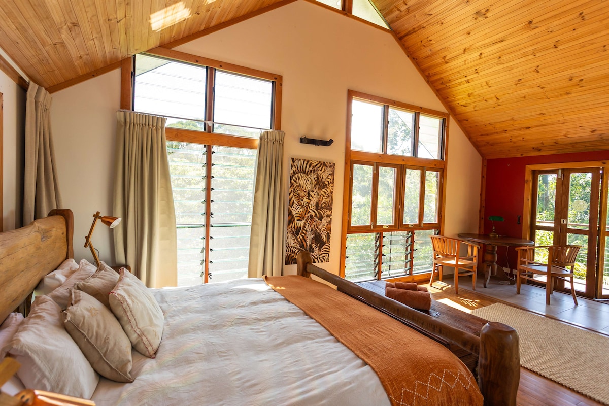 Bienvenido a nuestra casa de huéspedes privada en la selva tropical. Ubicada en lo alto de una colina en la selva tropical. La vida silvestre te rodea con pavos reales, urogallos, aves de matorral, águilas y otros animales nativos. La casa de huéspedes totalmente privada está cerca de la nueva y forma parte de nuestra propiedad sostenible galardonada a nivel nacional, diseñada por el anfitrión. Nota: No apta para 4 adultos. Consulta las normas. A 20 minutos en coche del centro de la ciudad y del aeropuerto. Cerca de las playas del norte, la Universidad James Cook, a 20 minutos de Kuranda y a 40 minutos de Port Douglas.