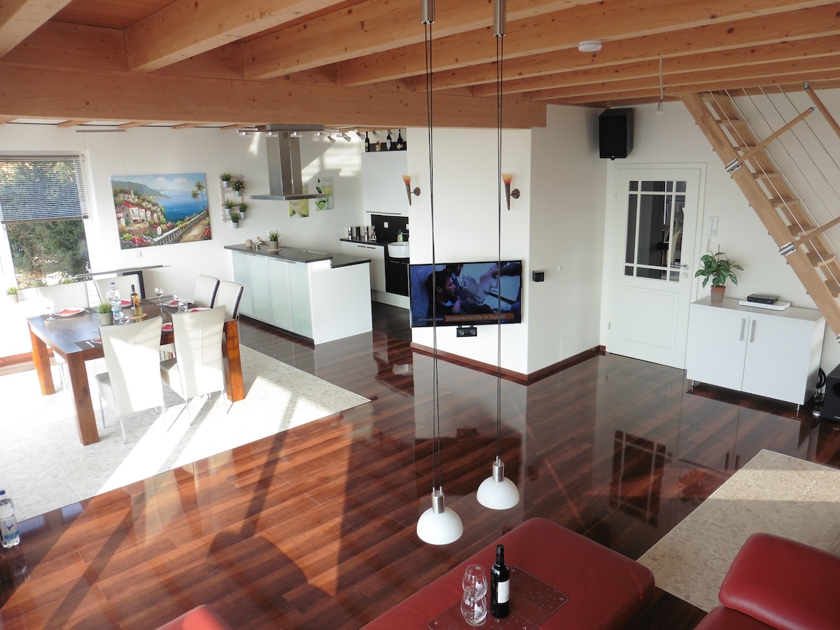 Estimados huéspedes: El ático de Loftalive es la expresión de la sensación de libertad moderna. El equilibrio entre los elementos de diseño moderno, las habitaciones abiertas y llenas de luz y la tranquilidad de la naturaleza hacen del ático algo muy especial. Aquí podrán recargar las pilas, trabajar con total tranquilidad, recuperarse de un viaje de negocios, organizar cocinas en vivo y planificar retiros.