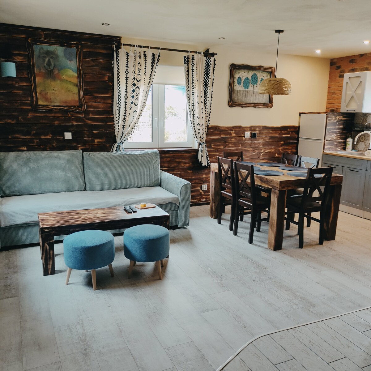Dos casas de madera que combinan el estilo local con la modernidad y el carácter rural. Abierto todo el año, cada uno dividido en dos apartamentos independientes (48 m² + 15 m² de terraza), con entrada independiente, cocina americana, salón, dos dormitorios y un baño. Todos los dormitorios tienen un balcón con vistas a los hermosos alrededores del bosque de hayas o al lejano panorama de Połonin. Hay dos zonas de juegos con camas elásticas para nuestros huéspedes más jóvenes.
