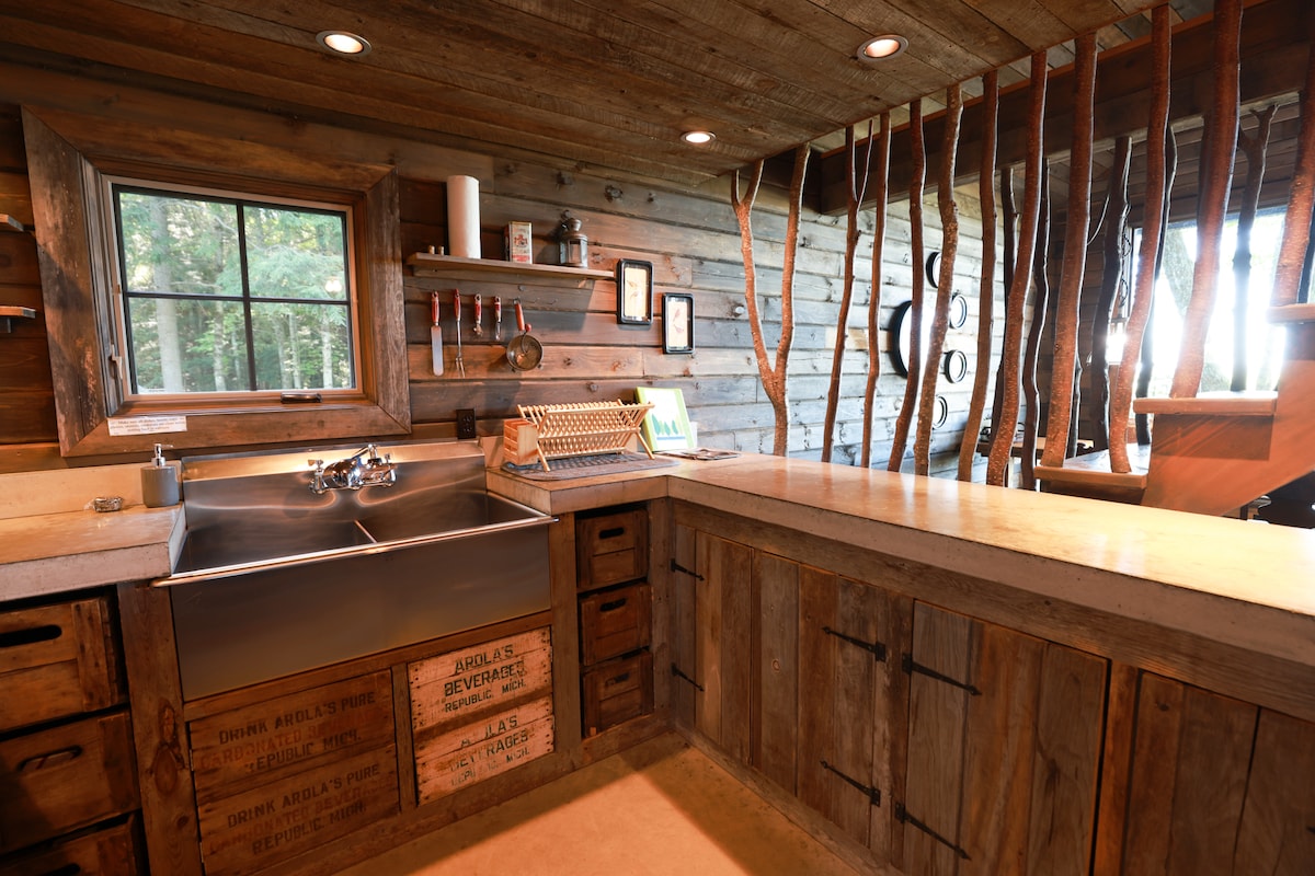 Disfruta de esta cabaña con vistas a la costa del lago MI. Conecta con la naturaleza rodeada por el bosque Hiawatha y la increíble vida silvestre. La planta abierta y el diseño artístico crean un ambiente acogedor. Capacidad para 4 personas en el dormitorio loft y 1 en el sofá de abajo. Cocina totalmente equipada y calefacción por suelo radiante. Incluye lavadora y secadora. El ambiente acogedor de este lugar tranquilo te inspirará a regresar año tras año. Esta cabaña forma parte de Wood Haven Estate. ***Acceso limitado al lago debido a los bajos niveles de agua.