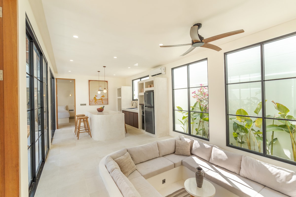 ¡🌴 Escápate al paraíso en Bingin! 🌴 Descubre una villa de ensueño de 1 dormitorio en Bingin, Bali, tu escapada privada al paraíso. Despiértate con el vaivén de las palmeras y la brisa del océano. Relájate en una acogedora sala de estar, cocina en una cocina totalmente equipada y disfruta del flujo continuo de la vida interior y exterior. El comedor hace la transición entre el interior y el exterior (se puede cerrar/aire acondicionado), perfecto para cualquier estado de ánimo. Ubicado en un entorno tranquilo, es tu pedacito de felicidad en Bali.