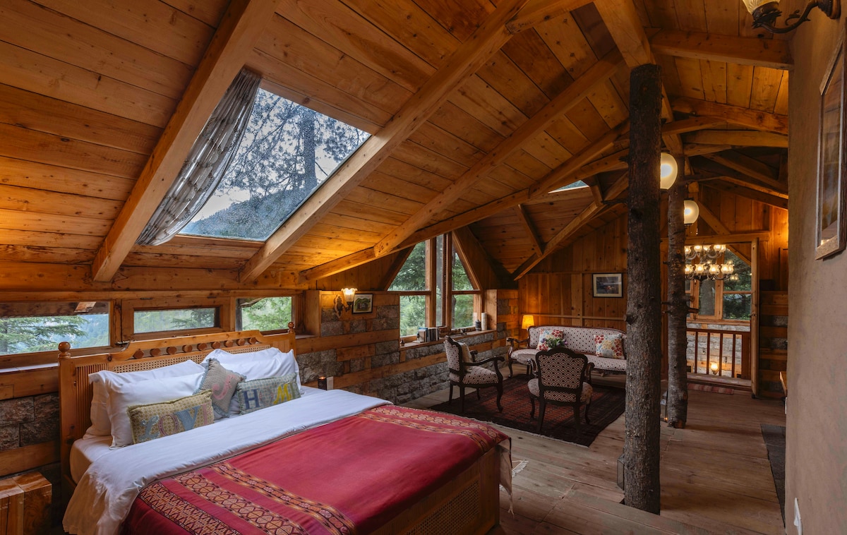 Bienvenido a nuestra acogedora cabaña de troncos enclavada en el corazón del encantador Jibhi, Himachal Pradesh, donde cada mañana te despertarás con impresionantes vistas del majestuoso puerto de Jalori. Nuestra propiedad de estilo cabaña de troncos ofrece un ambiente cálido y rústico que se complementa perfectamente con servicios modernos para tu comodidad. El dormitorio ofrece una vista increíble del paso de Jalori, haciendo de cada mañana un momento mágico al abrir los ojos a la grandeza de la naturaleza.
