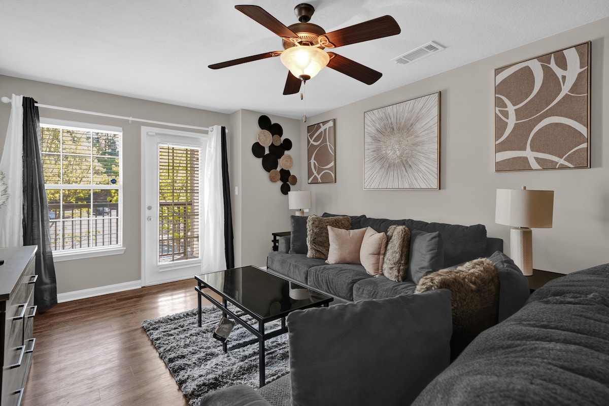 Disfruta de la comodidad de este espacioso apartamento de 2 dormitorios y 2 baños, lleno de luz, con acabados modernos, servicios de primera calidad y una piscina cristalina en la tranquila zona de Homewood. Relájate con estilo a pocos minutos de la UAB, el Hospital St. Vincent y los mejores restaurantes y atracciones de Birmingham. Perfecto para profesionales, familias o estancias prolongadas: disfruta de la combinación ideal de comodidad, conveniencia y relajación. ✦Wifi de gran velocidad ✦Cocina totalmente equipada Smart TV de✦ 50 pulgadas ✦Estacionamiento gratuito ✦Piscina. ✦Llegada autónoma sin contacto