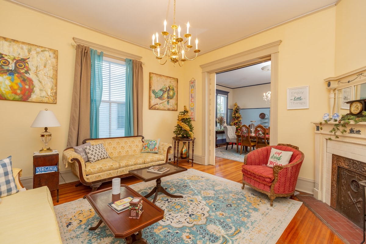 Olvídate de las preocupaciones en esta espaciosa casa histórica llena de encanto sureño. Tómate un café en el gran porche delantero, relájate en el acogedor salón o disfruta de una noche de cine en la sala de cine. La cocina bien equipada tiene hornos dobles, 2 neveras y mucho espacio para reunirse. Camina hasta restaurantes locales y tiendas de antigüedades o conduce un poco hasta la fábrica de helados local para tomar helado fresco. ¡Somos tu escapada tranquila perfecta! - Restaurantes y tiendas locales (a poca distancia) - Farmville (30 minutos) - Richmond (1 hora)