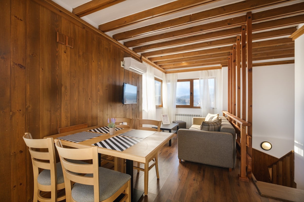 An apartment inside Perun Lodge Hotel. The Lift is a five minute walk from the hotel. Comfortably fits for three/thee. The hotel is closed outside the season, so swimming pool and spa are currently not available at the location (nearby locations are available). There is a guard at the reception 24/7 for accommodation.