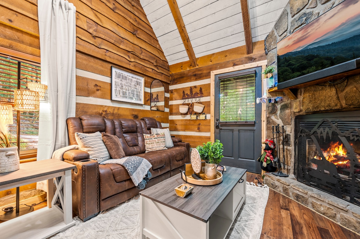 ¡ACOGEDORA CABINA! ¡Televisor de 65 pulgadas, bañera de hidromasaje, jacuzzi y chimenea!