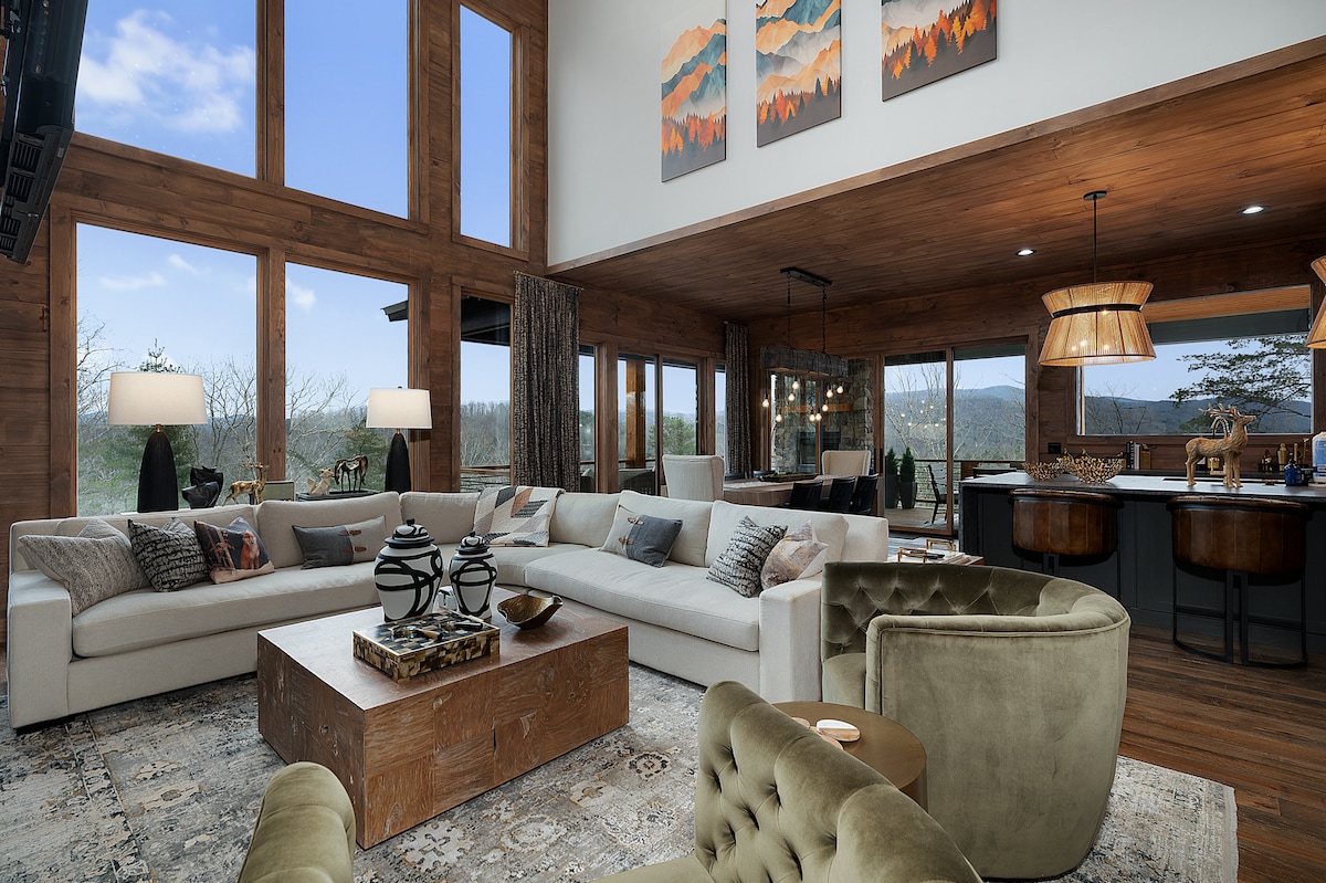 Refúgiate en las montañas y entra en Cascading View Lodge, donde serás recibido con increíbles vistas a las montañas de largo alcance. Esta cabaña de lujo está a menos de 20 minutos del centro de Blue Ridge. Ven a disfrutar de las vistas a la montaña en nuestro porche cerrado y amplia terraza. ¡Ofrecemos un pozo de fuego debajo de las estrellas y un jacuzzi para disfrutar con familiares y amigos! Para tu comodidad, ofrecemos 5 televisores inteligentes, wifi de alta velocidad, sala de juegos con juegos de arcade y mucho más, ¡y una cocina totalmente equipada! ¡Déjanos ayudarte a planificar tu viaje!