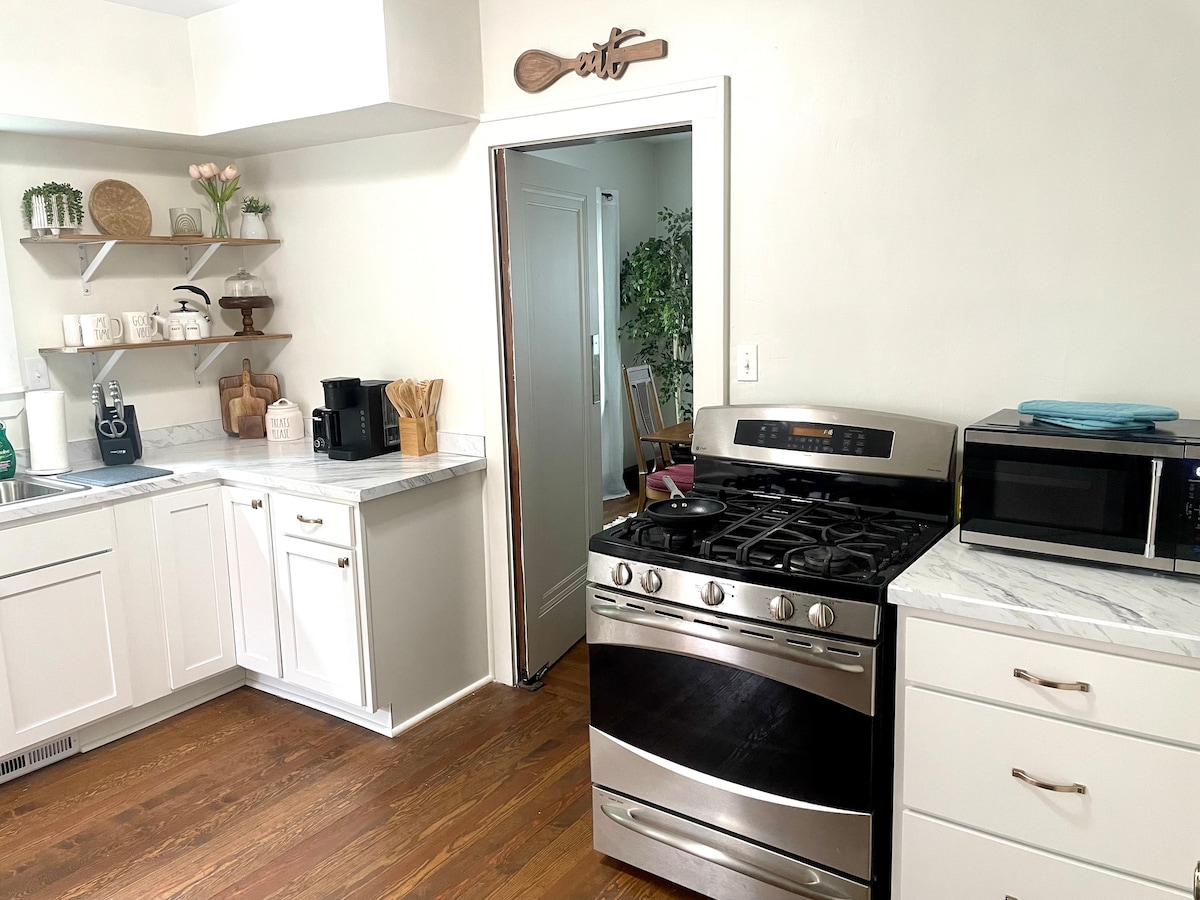 ¡Colonial de ladrillo renovado con buen gusto en el barrio histórico de Boulevard Park! Cuenta con 3 amplios dormitorios (¡dos con camas tamaño king!), 1,5 baños, amplios salones y comedores, y una sala de juegos con puerta para bebés. ¡Perfecto para cualquier grupo o familia! Hermosas actualizaciones, manteniendo el encanto histórico. ¡Aire acondicionado central! ❄️ Ubicado en la frontera de Youngstown/Boardman, a pocos minutos de una gran selección de tiendas de comestibles, tiendas y restaurantes. A 8 minutos del Centro Covelli. ¡Esperamos recibirte pronto!