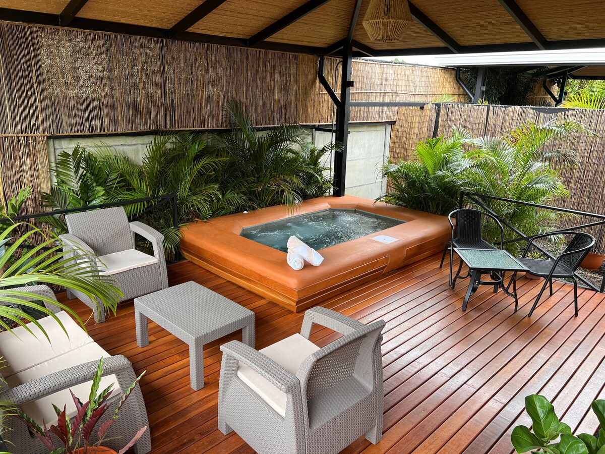 Villa ideal para descansar, rodeado de naturaleza. A solo 20 minutos del centro de la Fortuna . Un espacio magnífico para celebrar luna de miel y aniversarios, simplemente para desconectarse del estrés. Con un relajante jacuzzi de hidro masajes y agua caliente que alcanza una temperatura MÁXIMA de 40 grados centígrados,ideal para relajarse lejos del bullicio después de un día de aventura ,disfrutarás en una terraza totalmente privada con vista al jardín. * Nuestro hospedaje cuenta con desayuno.