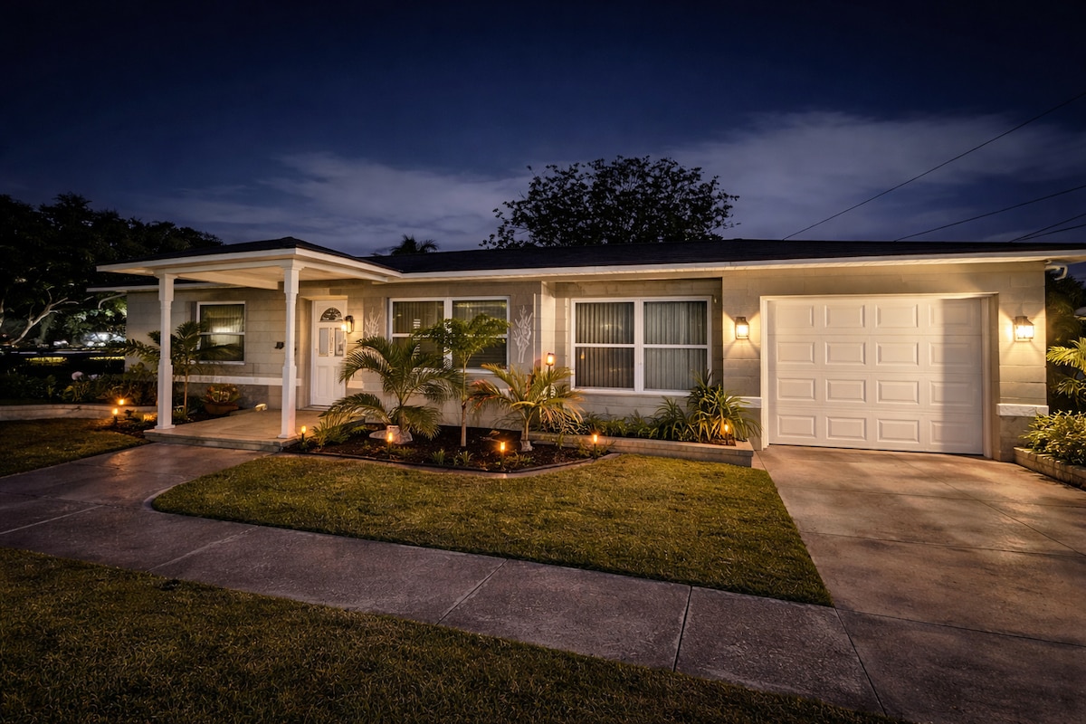 Ponte al día con familiares y amigos en esta elegante casa de vacaciones 🏡 a pocos minutos de las playas de arena blanca de Tampa Bay. Tenemos todo lo que necesitas para tus días de playa: sillas, toallas e incluso una nevera para que puedas relajarte y tomar el sol. Después de un día en la playa, entretén a toda la familia con nuestro campo de minigolf privado⛳️, refréscate en la piscina cristalina y disfruta de un interior cuidadosamente diseñado que combina comodidad y estilo para una escapada perfecta.