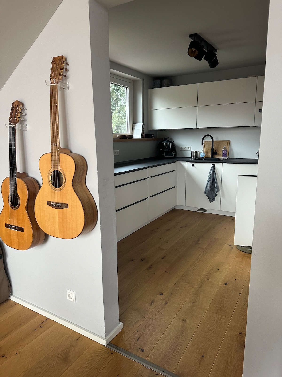 Nuestra casa de vacaciones se encuentra en el borde superior de la ladera sobre el valle de Schussental, con vistas al paisaje urbano de Ravensburg y al viñedo. Es el «Schwalbennest» (nido de golondrinas), un pequeño punto en el mapa de la ciudad de Ravensburg que cuenta una historia especial. Hemos conservado el antiguo «lavadero» en el que se lavaban los pañales para el hogar infantil que entonces se encontraba allí y lo hemos hecho brillar con cariño. Se ha conservado el encanto especial de esta casita.