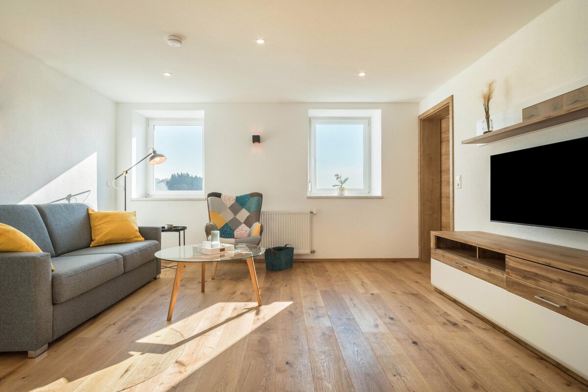Vivirá cómoda y auténticamente en los 24 metros cuadrados de nuestra «Bauernstüble». En la sala de estar hay un comedor, un armario, un sofá y televisión por satélite. Una escalera conduce a la zona de dormitorio con un colchón de 140 x 200 cm. Junto a la entrada hay una pequeña cocina totalmente equipada. Un moderno cuarto de baño con calefacción por suelo radiante y luz natural completa el apartamento. Se puede utilizar una lavadora + secadora por 4 € por carga de lavado.