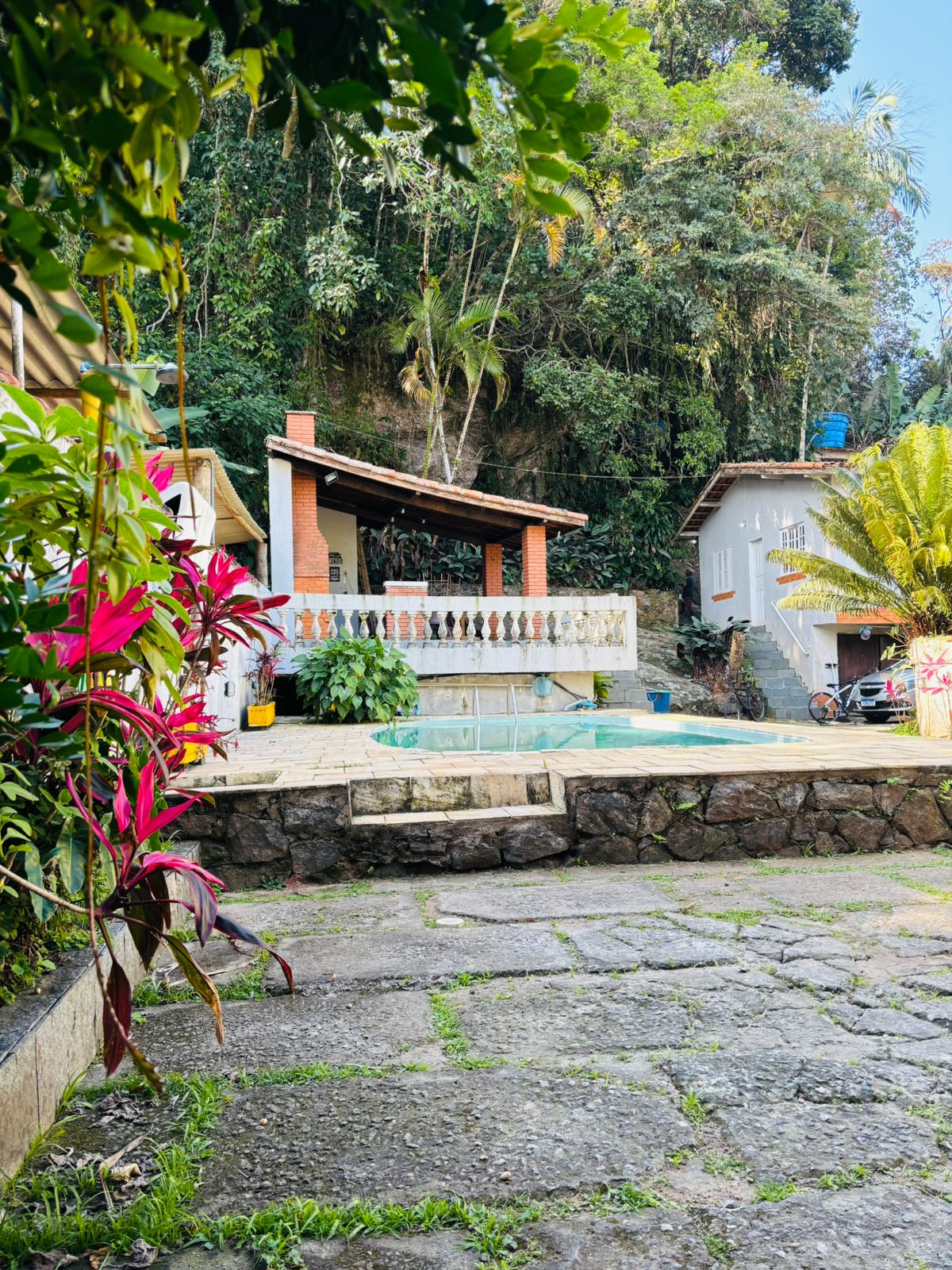 Acogedora casa con AIRE ACONDICIONADO, PISCINA, cocina con utensilios, TV, piscina, barbacoa, jardín, zona exterior cubierta con nevera, sofá, mesas, sillas, ducha, terraza, sonido, plantas, 4 plazas de aparcamiento, a 200 metros de la cascada, rodeada de bosque atlántico y tucanes, a 1,3 km de la PLAYA DE BOIÇUCANGA y a 7 km de la PLAYA DE MARESIAS, a unos 300 metros de panaderías, mercados, farmacias, bares. Calle segura con acera *Atencion: Para mantener el precio bajo, el aire acondicionado se puede encender de 20:00 a 8:00.