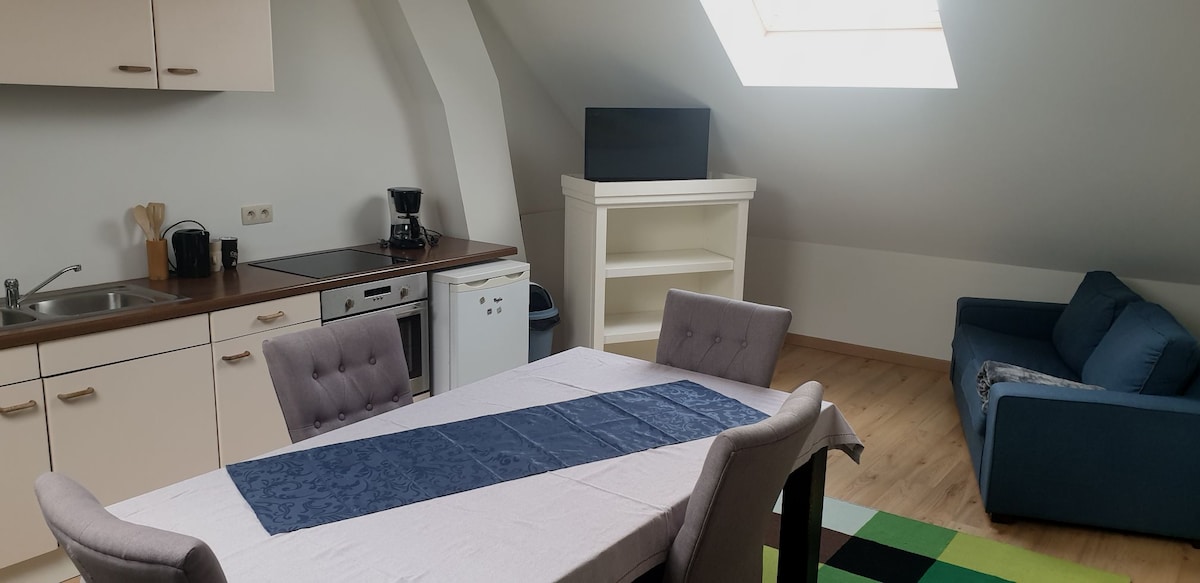 El apartamento está situado en las alturas de Leuze-en-Hainaut. Ofrece unas vistas maravillosas de la ciudad. Tiene un aparcamiento privado para 2 coches. Se encuentra a 1,2 km de la estación de tren y el acceso a la autopista está cerca. Las grandes superficies se encuentran en un radio de un kilómetro. Tiene todas las comodidades de una casa reciente (calefacción, wifi...). Leuze se encuentra entre Mons y Tournai y el parque «Pari Daiza» está a 15 km. Bruselas y Lille están a una hora en coche por la autopista.