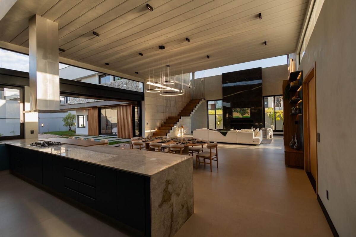 Disfruta de una experiencia única en una casa moderna, sofisticada y extremadamente acogedora, situada en una de las mejores regiones de Boituva, frente al punto de salida del globo, con una encantadora vista al amanecer. Tiene capacidad para 5 adultos en camas y +2 en el sofá cama. Cuenta con 2 dormitorios (1 en suite), amplias habitaciones integradas, una cocina completa, una zona gourmet con barbacoa, una piscina con hidromasaje y una agradable zona al aire libre. Garaje para hasta 4 coches Llegada a las 15:00 horas | Salida a las 13:00 horas