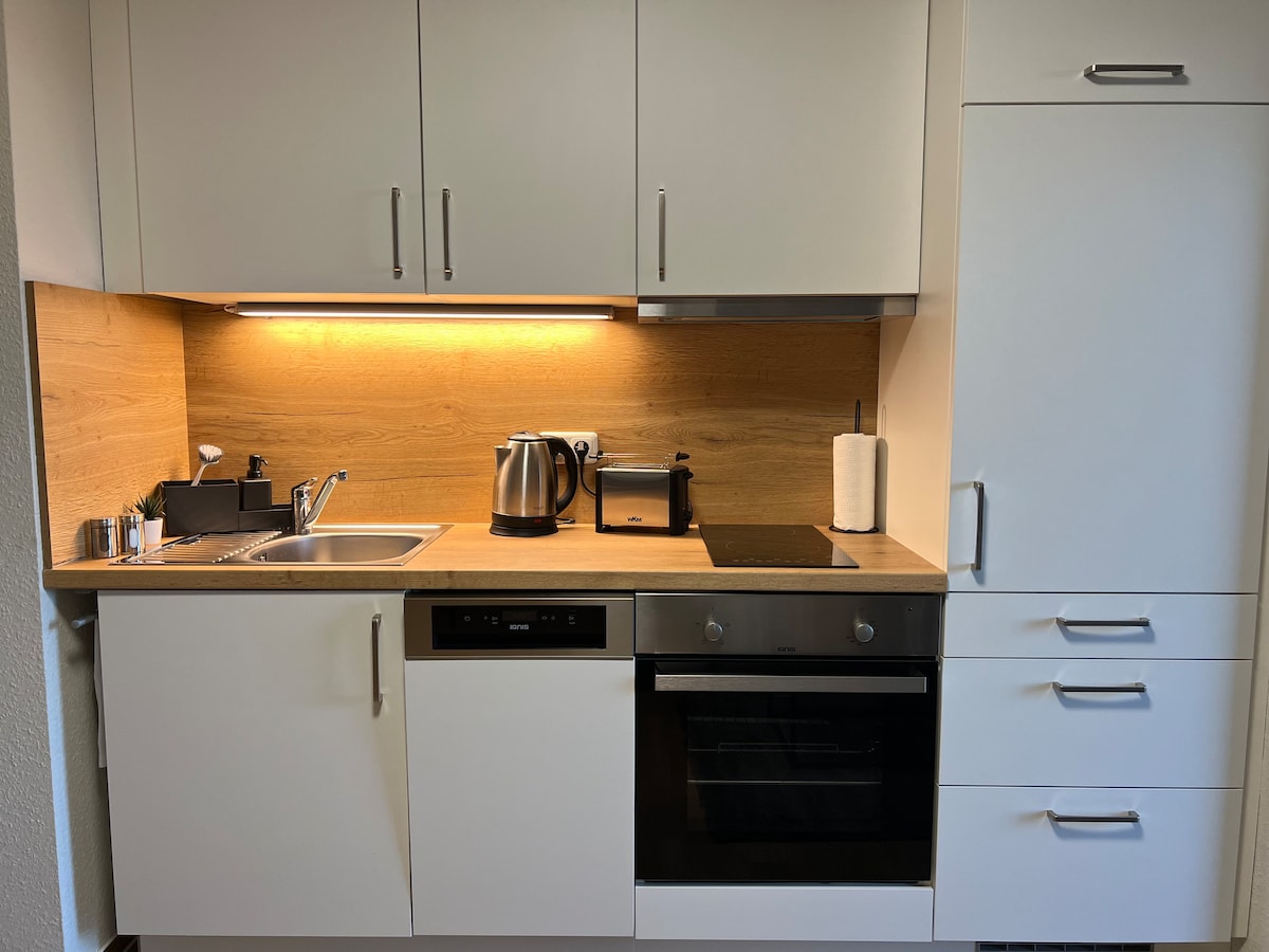 Tu acogedor y moderno apartamento en el centro de Wolfsburgo te está esperando. Tu apartamento está totalmente equipado y amueblado de forma moderna. No solo impresiona por su equipamiento de alta calidad, sino también por su céntrica ubicación en Detmerode. En pocos minutos se puede llegar en coche o autobús al centro de Wolfsburgo y a la fábrica de Volkswagen. El idílico bosque está justo en tu puerta y te invita a dar paseos por el tranquilo barrio.