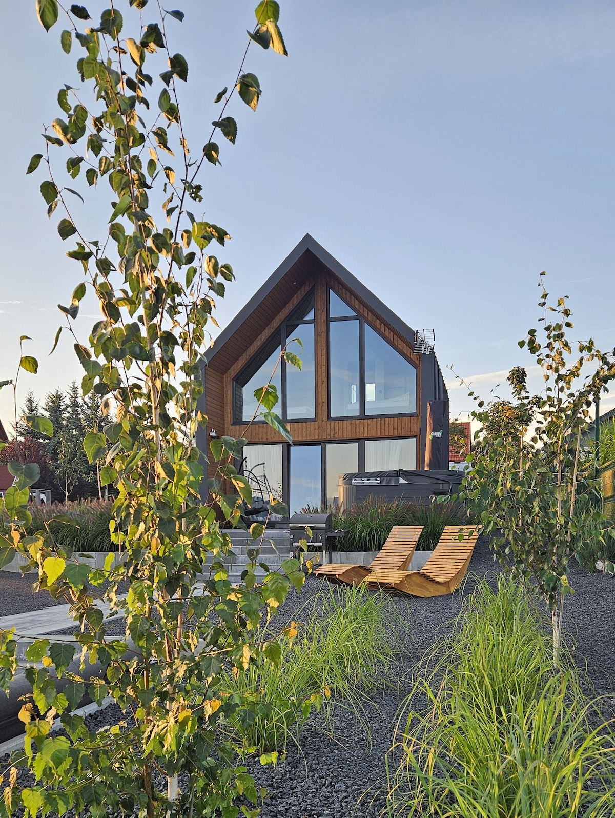 Le invitamos a una casa de campo abierta todo el año con terraza, zona de fogatas y barbacoa. El jardín es grande, compartido con los anfitriones. Nuestros gatos, perros y ovejas caminan despacio y suelen ser los primeros en dar la bienvenida a los huéspedes :) La propiedad está abierta a un prado y a un bosque por el que pasa un sendero verde. Sin las luces de la ciudad, el cielo nocturno está lleno de estrellas y se pueden escuchar los sonidos de los animales salvajes de los bosques cercanos.
