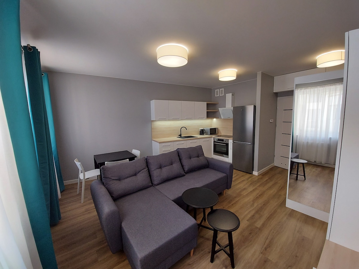 Hablamos: polaco, inglés, español Un apartamento moderno de 40 m², que cuenta con un dormitorio con cama doble, una sala con sofá cama, una cocina y un baño, complementado con un espacioso balcón de 13 m². Es un lugar ideal tanto para relajarse como para trabajar, además de ser una base perfecta para explorar Jasna Góra y el centro. Perfecto para una estancia de una noche, un fin de semana o una visita más larga. A partir de abril, también habrá estacionamiento disponible.