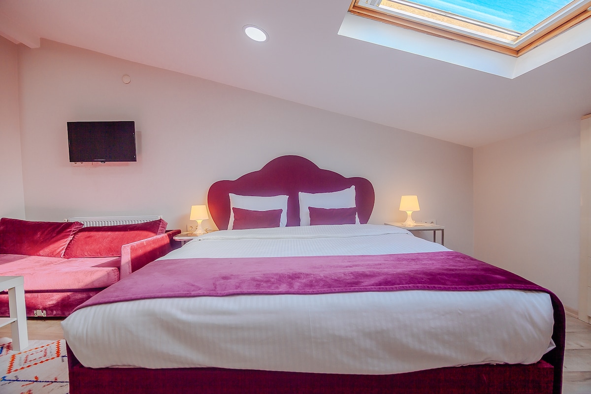 Nuestro edificio histórico, construido a finales del siglo XIX, se encuentra en una zona muy céntrica. Se encuentra a solo 2 minutos a pie de la calle Istiklal. La calle donde se encuentra nuestro edificio está cerrada al tráfico de vehículos y, debido a que nuestros vecinos son hoteles, es muy segura y tranquila. A lo largo de sus 150 años de historia, nuestro edificio ha experimentado 9 grandes terremotos sin sufrir ningún daño. Se cree que el edificio fue construido por albañiles armenios y griegos.