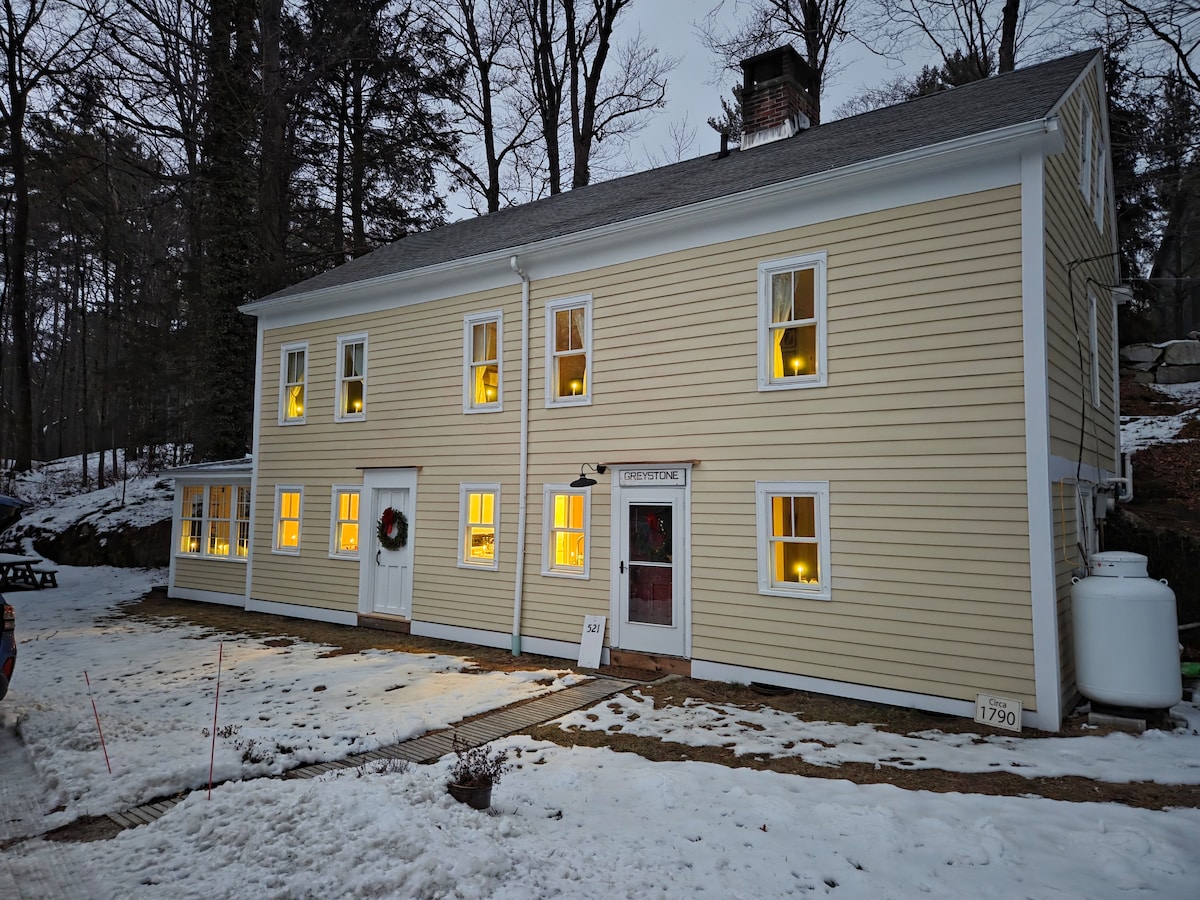 ¡Alquiler vacacional en Hudson Valley/Berkshires! Ubicado en una antigua granja de caballos de 13 acres, el apartamento de tamaño completo (entrada privada) cuenta con todo nuevo y se encuentra en las montañas Taconic. Cuenta con un dormitorio separado, un baño nuevo, una pequeña cocina con cafetera Nespresso, un comedor y una sala de estar con chimenea y un baño privado. La propiedad tiene un estanque, arroyo y vistas de 360 grados. Relájate en la propiedad o aventúrate. A 8 minutos de Catamount, a 7 minutos de las cataratas Bash Bish, ¡hay mucho que hacer a nivel local! ¡A 7 minutos a pie de la ruta de senderismo más cercana!