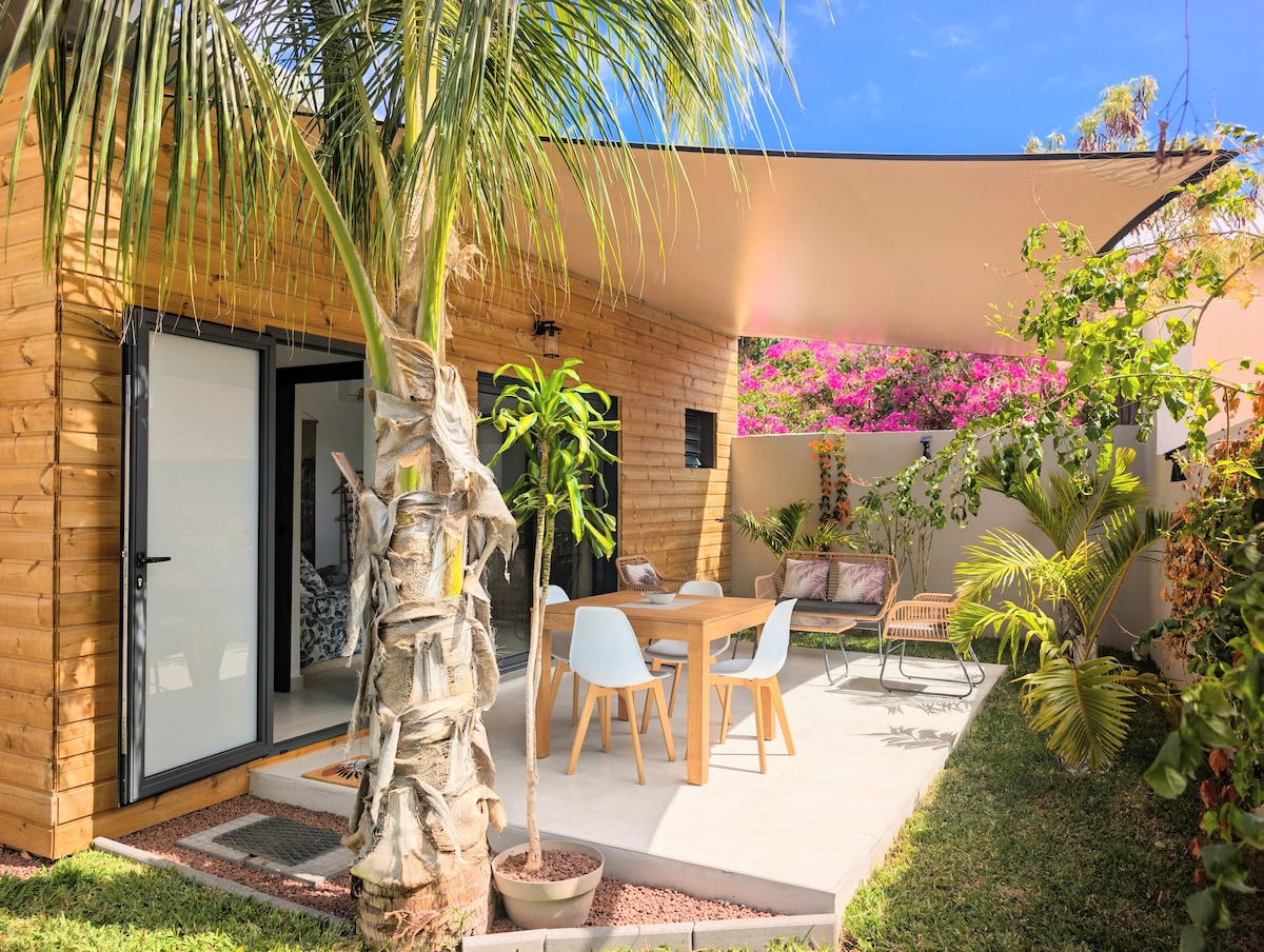 Meublé de tourisme classé 4 étoiles Également visible sur l’office du tourisme de l’Ouest. L ‘espace de vie proposé de 80m2 est constitué de deux parties de vie séparées par un patio intérieur privé. Il est mitoyen de la maison que nous habitons. Profitez d'un accès privé avec un parking fermé (pour une berline standard), du confort et du charme de l'endroit dans un quartier très recherché. Traversez la route et vous serez sur le lagon protégé de la Saline les bains en moins de cinq minutes.