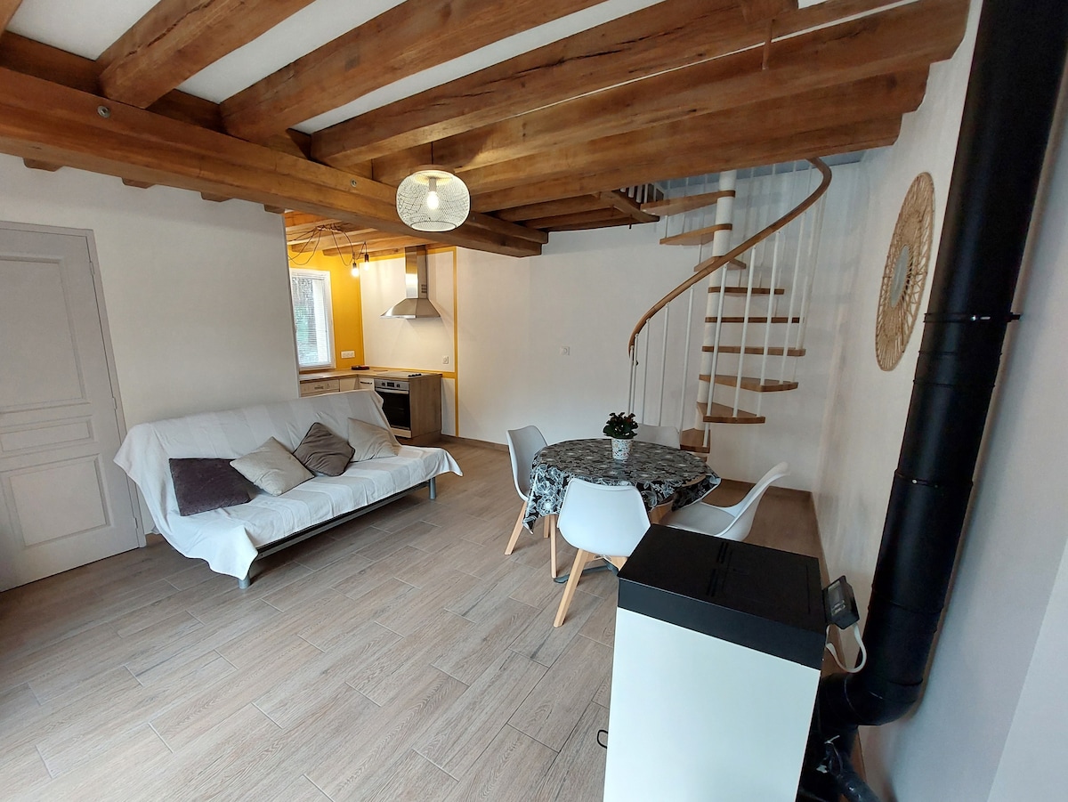Gran estudio en amueblado turístico para una persona, espacioso (25,77 m2), muy luminoso (Grand Velux), con todas las comodidades. Estudio situado en el piso de una casa de campo del Valle del Loira en proceso de renovación, en la granja de Crôt Noir de los años 1800. Tranquilo, muy apacible. Cerca: 50 m la Judelle ideal para la pesca. A 800 m del canal lateral al Loira y del Loira. En el circuito N°2 de la Loira en bicicleta. A 4 km de la piscina climatizada de Belleville. A 20 km de Sancerre. A 11 km de Cosne sur Loire.