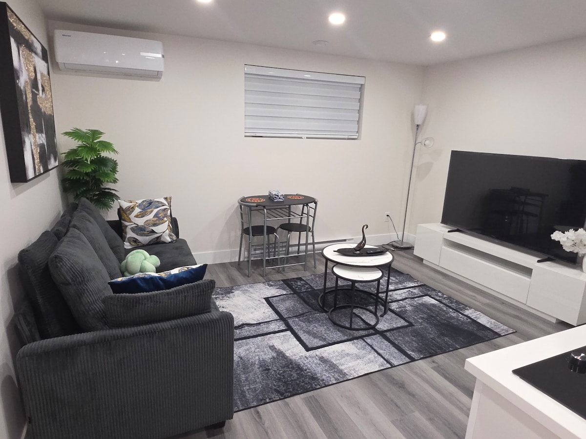 Exquisita suite en una zona serena, cerca de Magnetic Hill, el zoológico de Moncton y cerca de los principales centros comerciales de la ciudad. Este apartamento en el sótano de nueva construcción ofrece una cómoda sala de estar y un dormitorio atractivo, lo que garantiza una estancia tranquila. Es ideal para personas que viajan solas, parejas o familias pequeñas. Estamos deseando recibirte en nuestro apartamento premium.