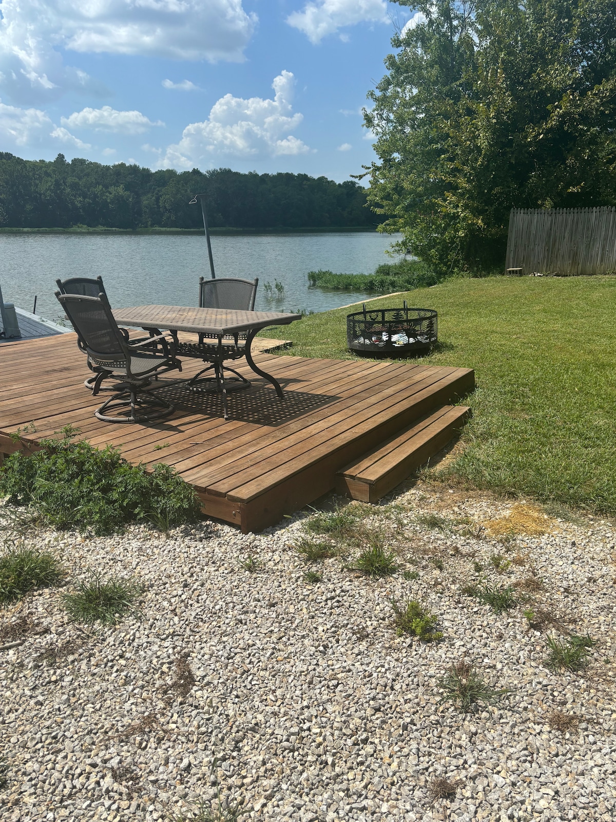 Casa Serene Lake ubicada en el lago Fort Scott. Casa de estilo moderno recién construida junto al lago. Cuenta con 2 dormitorios grandes. 1 suite principal con una cama tamaño king, 1 dormitorio de invitados también con una cama tamaño king. 2 baños y un gran espacio de estar abierto y cocina abierta. 1500 pies cuadrados más 1000 pies cuadrados de patio cubierto que incluye parrilla y jacuzzi para 5 personas. Aparcamiento cubierto. Esta propiedad es grande, se encuentra en dos lotes y tiene un gran acceso a la orilla y un muelle. La casa es privada y es el lugar perfecto para una escapada serena.