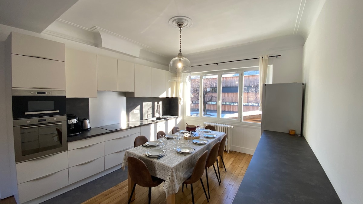 El chalet está cerca de la ciudad, situado a 1 km de la estación de tren, funicular. Apartamento de 125 m2 en 2 niveles, 4 habitaciones, un baño, 2 aseos. Es perfecto para parejas y familias con niños. Totalmente equipado, decorado al estilo chalet de montaña, bosque antiguo y alojamiento nuevo. Una plaza de aparcamiento delante del chalet, espacio para bicicletas/esquís Gastos de limpieza: puesta a disposición y mantenimiento de la ropa de cama y toallas, limpieza al final de la estancia. Zona residencial, tranquila. Vistas a las montañas .