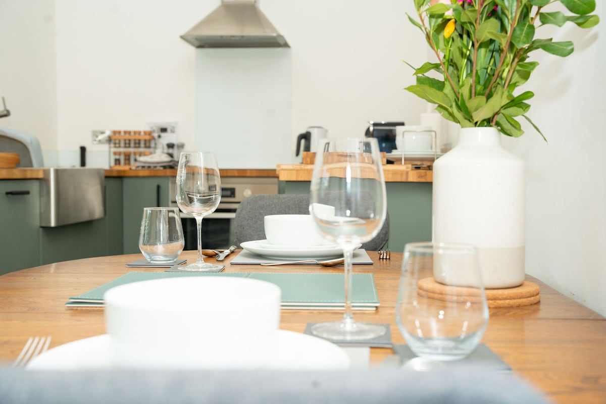 Un espacio tranquilo y profundamente lujoso para recargar energías y reconectar. The Shippon es un establo de vacas meticulosamente convertido con suelos de hormigón pulido y radiante, paredes de color verde oscuro suavemente curvadas, cocina hecha a mano, rincones de lectura cálidamente iluminados y materiales naturales. Mantas de lana, sofá de plumas, estufa de leña escandinava antigua, cama tamaño king con sábanas y edredón franceses, ducha de cascada y las toallas más suaves. Nuestra tranquila aldea de Devon solo está iluminada por las estrellas por la noche. Es posible que duermas mejor de lo que has dormido en años.