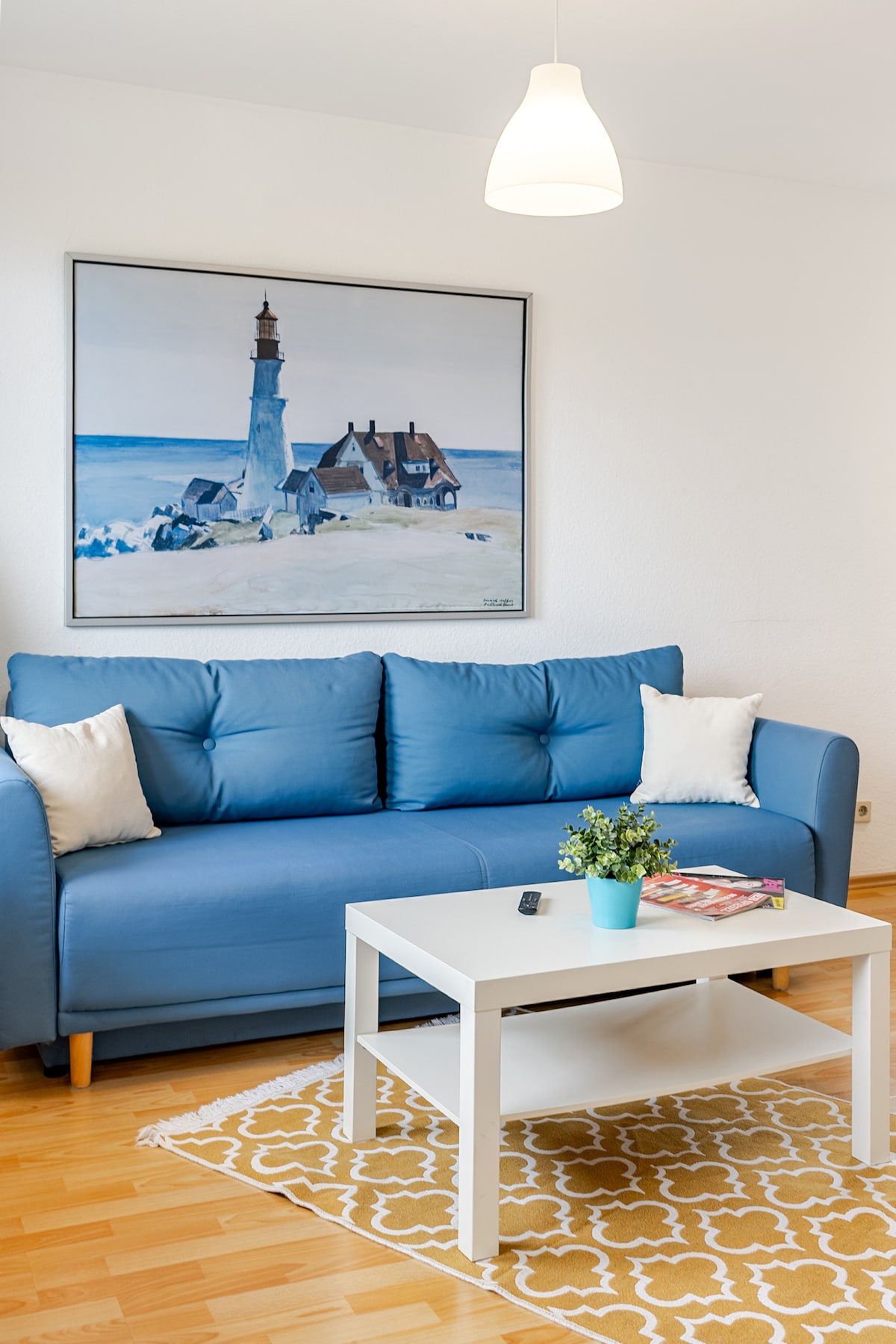 Vollmöblierte Zweiraumwohnung,Nichtraucher, 1.Etage, 62m²,mit zusätzl. großen Balkon mit Tisch,Stühlen,Sonnenschirm+Elektrogrill.Küche ist mit Kühlschrank,Gefrierschrank,Mikrowelle,Wasserkocher, Kaffeemaschine,Toaster,Geschirr,Besteck & einigen Gewürzen ausgestattet. Bad mit Badewanne+Duschvorrichtung,Bademantel,Waschmaschine(ab 1Wo. kostenlos),Fußbodenheizung. Im Wohnzimmer ist SAT-TV, DVD-Player&Sofa mit Bettfunktion.Schlafzimmer mit Doppelbett&großen Kleiderschrank.Fahrradverleih auf Anfrage.