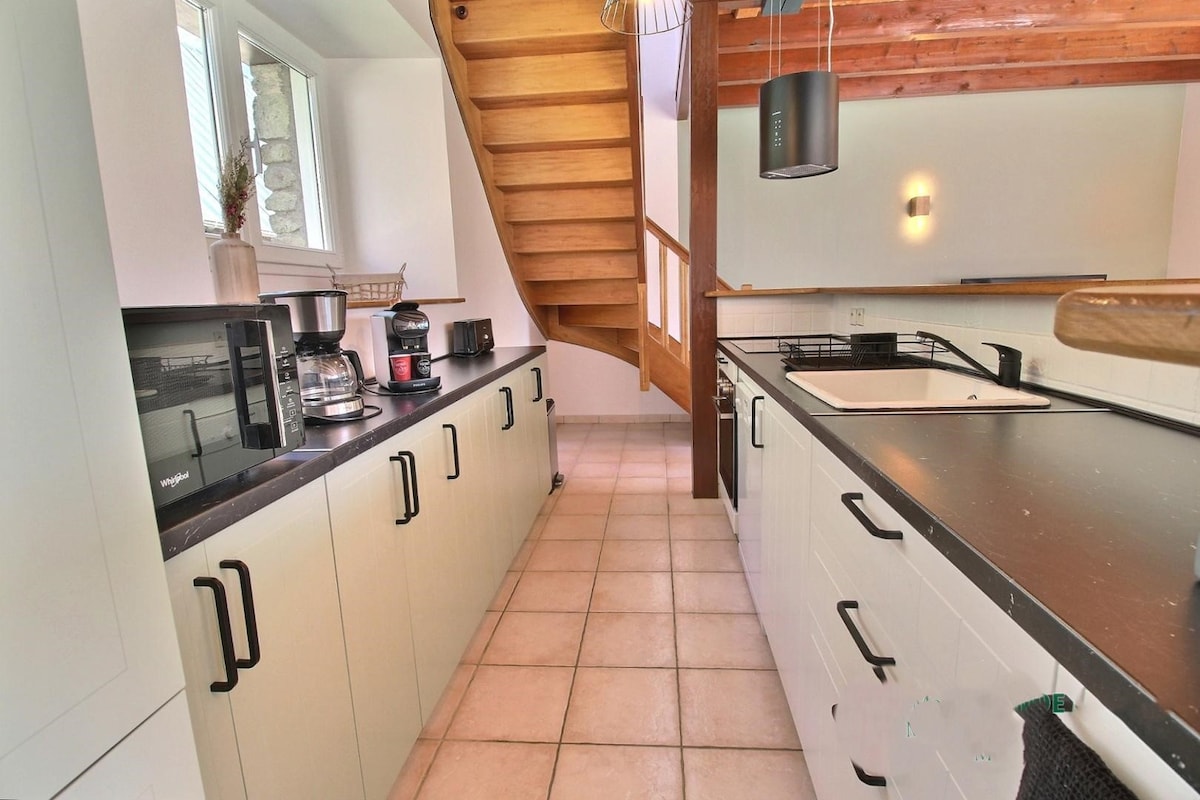 A 15 minutos de Vannes y Auray, a 5 minutos de Ste Anne d'Auray y del pueblo de Grand-Champ, en un entorno tranquilo y verde, hemos restaurado cuidadosamente una pequeña casa de piedra lista para recibirle solo, en pareja o con 2 niños pequeños. En la planta baja: sala de estar con cocina totalmente equipada y sala de estar abierta a un jardín privado de 150 m2. Arriba: habitación luminosa en altillo abierto. Entrada, armarios Baño + ducha Parking privado refugio para 2 ruedas