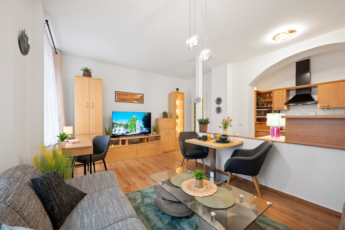 ¡Bienvenido a nuestro elegante apartamento amueblado en el corazón de Braunsbedra! El alojamiento céntrico te ofrece un ambiente moderno y acogedor en un entorno tranquilo, perfecto para una estancia relajante cerca del hermoso Geiseltalsee. Aspectos más destacados del apartamento: - Ubicación céntrica – Tiendas, restaurantes y el Geiseltalsee están a poca distancia. - Casa totalmente equipada: cocina, wifi, Smart TV y mucho más. - 2 dormitorios - Ideal para familias o amigos.