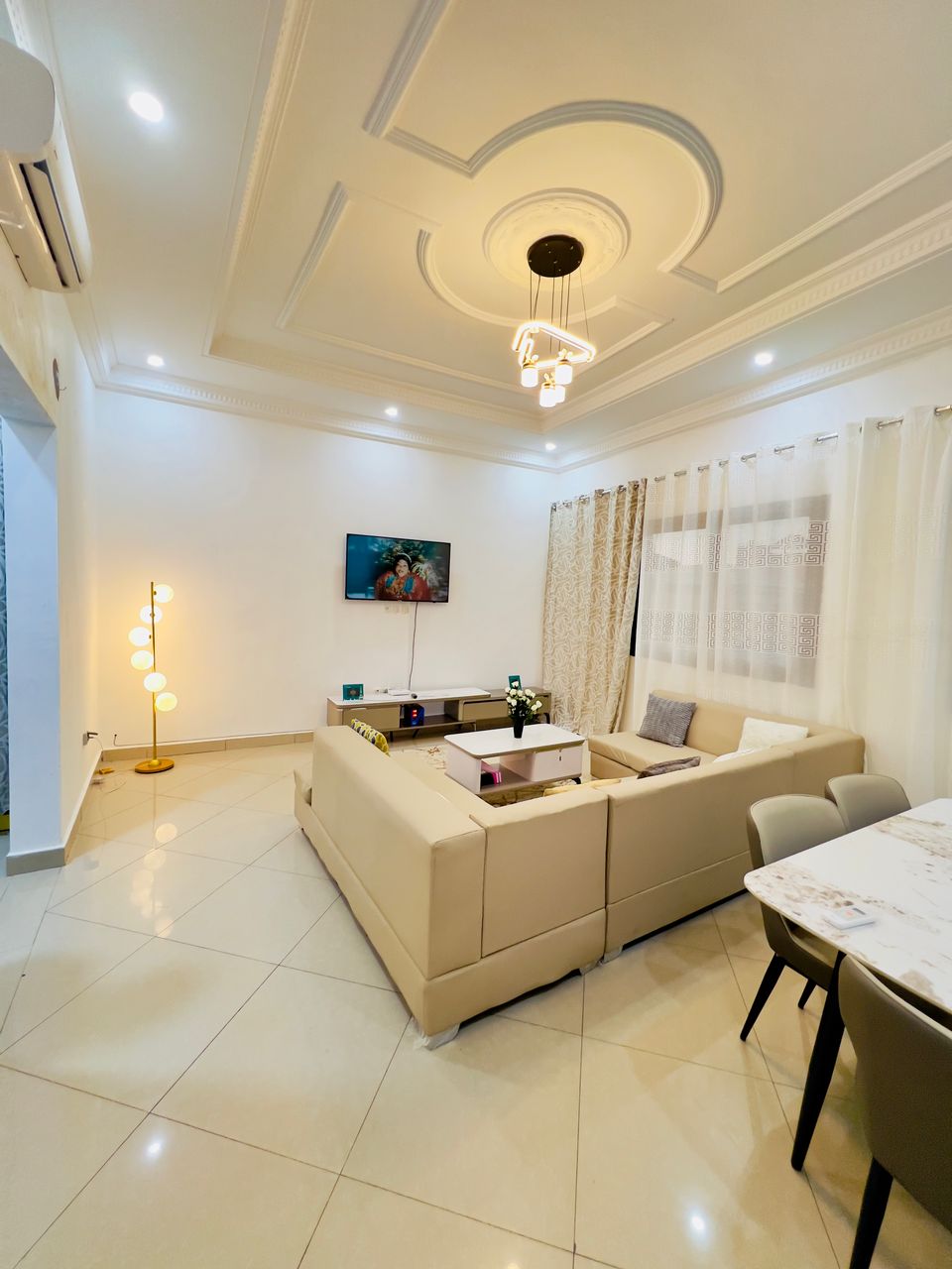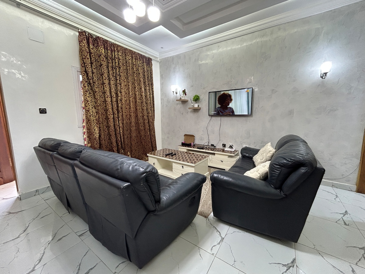 Olvide sus preocupaciones en este alojamiento espacioso y sereno, con un dormitorio grande y un segundo dormitorio auxiliar con sofá cama, El apartamento está situado a 2 minutos en coche del aeropuerto internacional de Maya Maya en el segundo piso, en un edificio reciente con ascensor, una vista de la villa🏙️, tiene acceso a Netflix, generador,