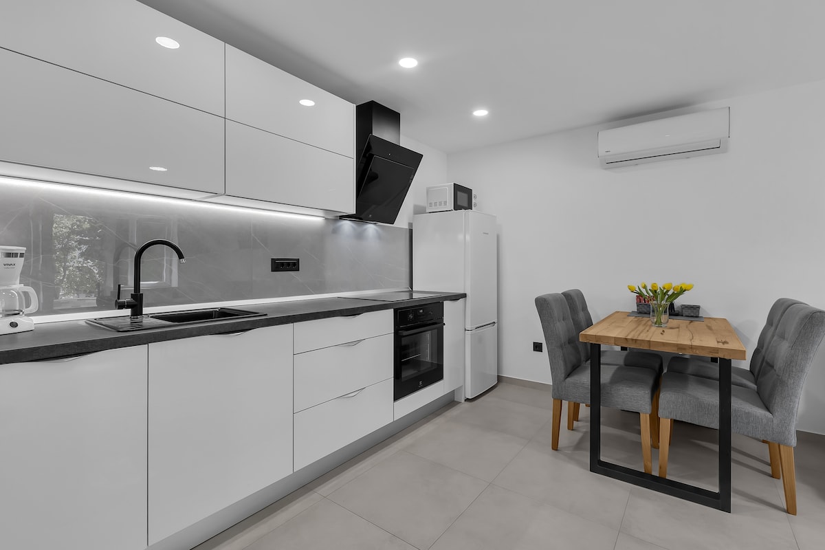 ¡Te damos la bienvenida a una escapada y apartamentos auténticos con vistas al mar en Brela! Nuestra tradicional casa de piedra de estilo dálmata está situada en una zona tranquila y exuberante, a solo 10 A un minuto a pie de la playa (100 m sobre el nivel del mar), el apartamento cuenta con una terraza con vistas al mar, perfecta para descansar o disfrutar de comidas al aire libre. Ya sea que estés aquí con familiares o amigos, nuestros apartamentos ofrecen el espacio para relajarse y explorar los impresionantes alrededores. T esperamos darte la bienvenida y garantizar que tu estancia sea verdadera inolvidable