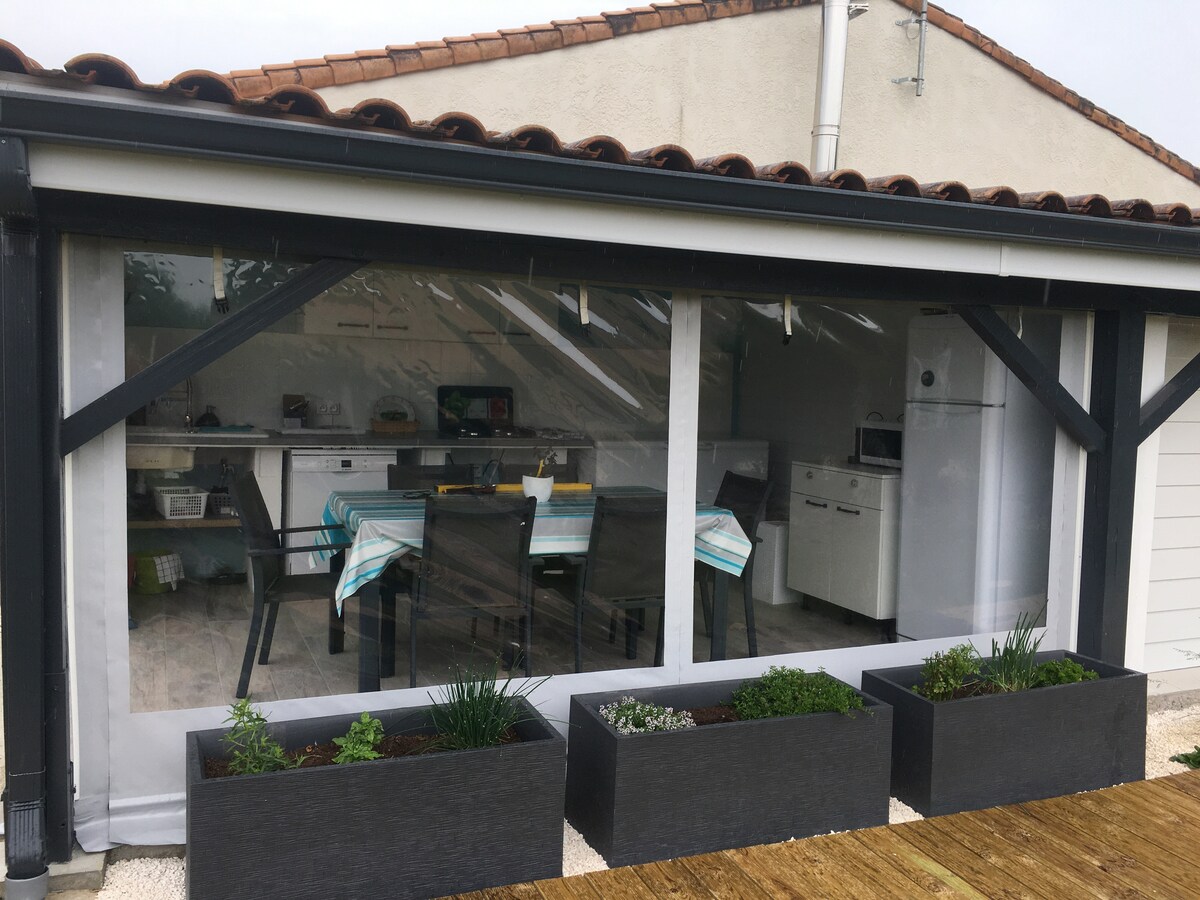 Una casa de estilo depurado y cómoda, a 10 minutos de las playas Dos dormitorios con TV y ropa de cama de alta gama, cocina totalmente equipada, terraza ☀️y barbacoa. El alojamiento está totalmente climatizado Las camas están hechas, se proporciona ropa de cama, todo está listo para su llegada. El aparcamiento está justo al lado de la casa. Le doy la bienvenida en el lugar, con un espíritu de sencillez y comodidad para que su estancia comience con total tranquilidad. Futbolín y máquina recreativa con muchos juegos 🕹️