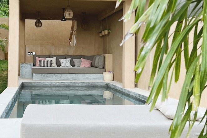 Despertar frente al mar, sentir la brisa y escuchar las olas marca el ritmo de la estancia. La pérgola abraza una palmera viva y desde ella un columpio desciende hacia la alberca, invitando a pausar el tiempo. Es un espacio para respirar, leer, crear o simplemente estar, rodeado de naturaleza y calma. Cada momento se vive lento y auténtico, profundamente conectado con el océano, su energía y la sensación de libertad que hace difícil querer irse.