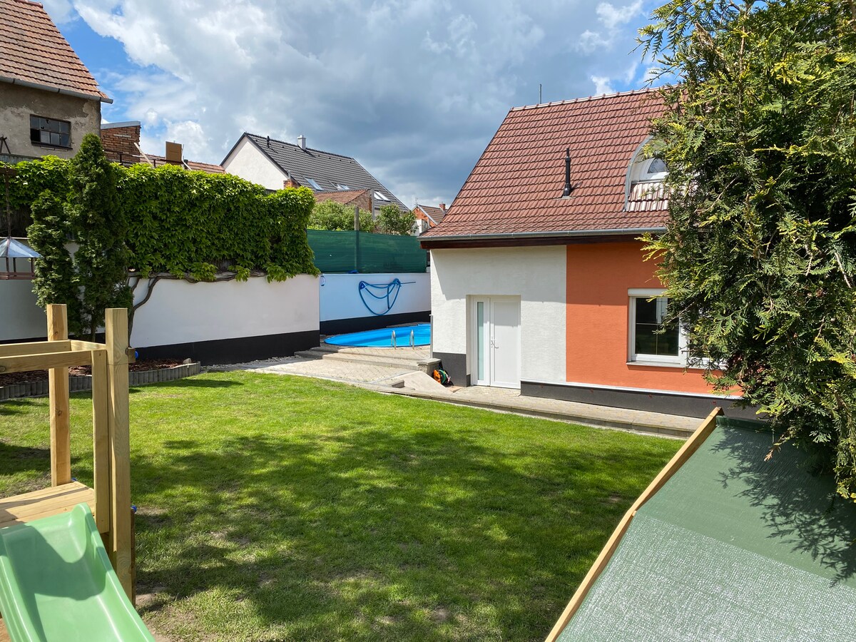 La casa con jardín bajo la Pouzdřanská stepí ofrece un refugio espacioso y tranquilo, ideal para los amantes de la naturaleza y los paseos. El alojamiento se encuentra en una zona residencial tranquila del pueblo, literalmente a pocos pasos de la naturaleza y extensos viñedos. Hay una terraza con acceso a un jardín natural inspirado en la flora esteparia. La ubicación única ofrece ricas oportunidades para hacer excursiones por la zona: rutas en bicicleta por el vino, Pálava, Mikulov, Lednice o la estepa de Pouzdřanská y los viñedos de Kolby.
