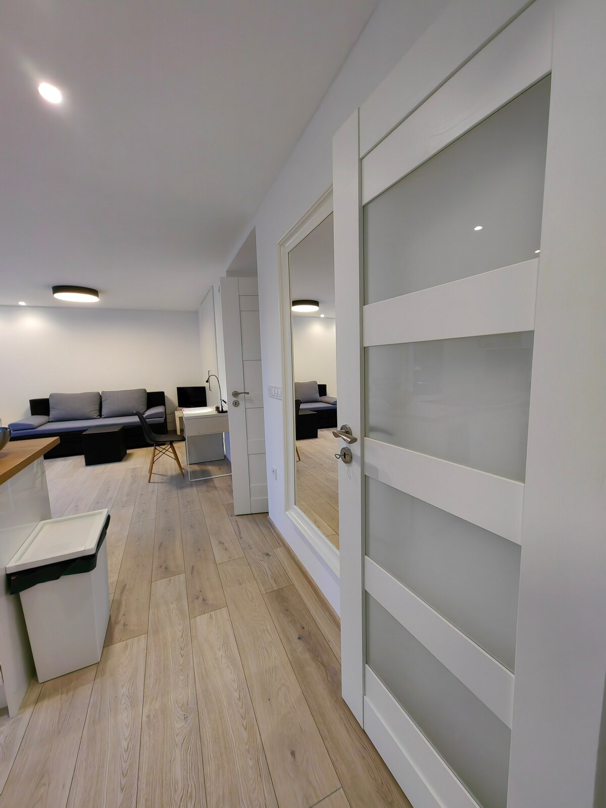Despiértate con el canto de los pájaros y el susurro del viento entre las ramas. Bienvenido a nuestro apartamento aislado en el borde del bosque, un espacio tranquilo en sintonía con la naturaleza y la creatividad. Nuestro apartamento es perfecto para una pareja, una familia o un grupo de amigos. Encontrarás una cocina totalmente equipada con nevera, una acogedora sala de estar con cama doble y un sofá cama (futón) para dos personas. También hay un baño y una bonita zona de estar al aire libre, ideal para disfrutar de un café por la mañana o un té por la noche bajo las estrellas.