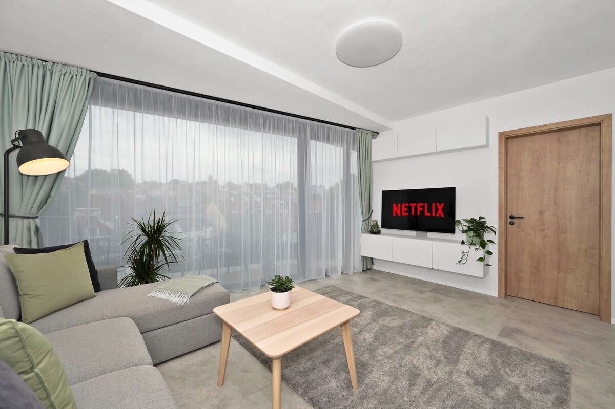 Acogedor apartamento nuevo en el centro de Brno con aire acondicionado.