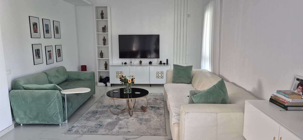 Pepas Residence es un moderno apartamento de un dormitorio que cuenta con una acogedora sala de estar con sofá, una cocina totalmente equipada y un elegante baño. Ubicado en el sexto piso de un edificio nuevo con ascensores, incluye una lavadora con secadora, aparcamiento subterráneo gratuito y una estación de carga de coches eléctricos (con cargo adicional). A solo 5-7 minutos a pie del metro de Pipera, se encuentra en una zona tranquila y segura cerca de tiendas, el centro comercial Promenada y el distrito de negocios Pipera-Aviatiei, perfecto tanto para estancias cortas como largas.