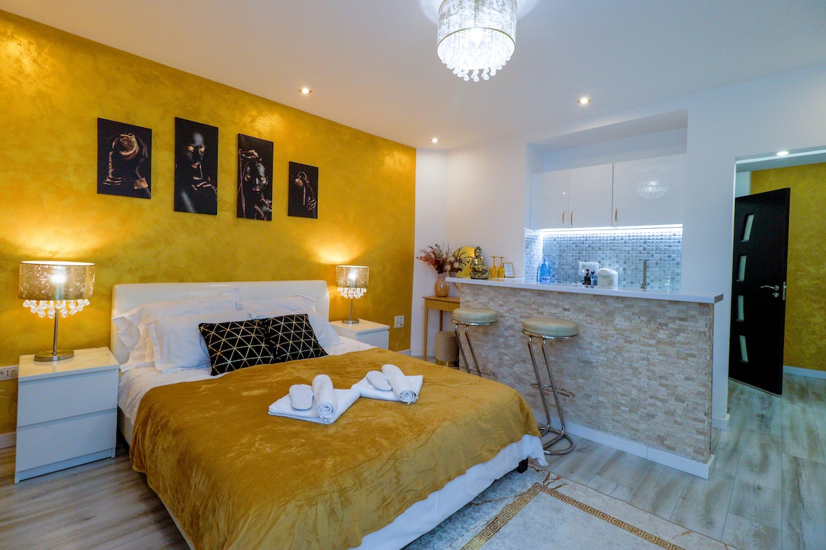 Estoy esperando tu llegada a mi recién reformado y cómodo estudio, situado en el corazón de Bucarest, cerca de las principales atracciones: casco antiguo, Parlamento, teatros y varios restaurantes alrededor. Ha sido renovado con materiales de alta calidad y cuenta con todas las comodidades posibles para una estancia súper cómoda. En el interior también encontrarás una cocina con todos los utensilios para una comida ligera.