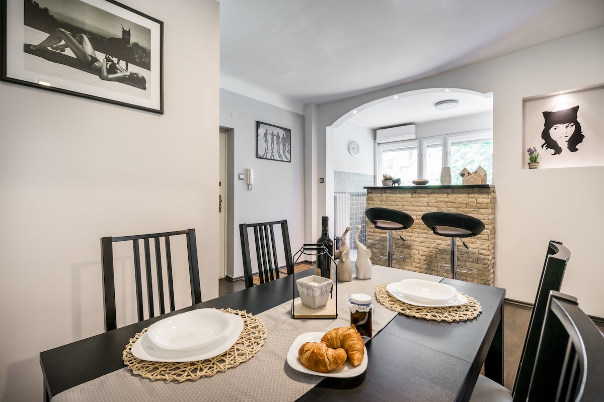 Como otra joya de nuestra colección única de apartamentos, presentamos un nuevo hogar lejos de casa al exigente visitante de Budapest en una ubicación inmejorable. Es elegante, lujoso, cómodo y fiel a su entorno y al estilo arquitectónico del edificio. Es uno de los pocos edificios auténticos de la Bauhaus en el centro de Budapest y, aunque, por supuesto, de una manera modernizada, tratamos de mantenernos fieles a muchos elementos de este estilo inflable cuando creamos este apartamento único.