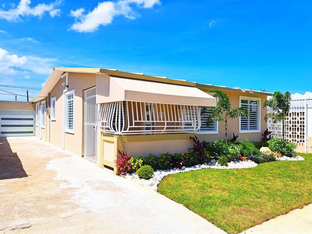 Cozy home fully renovated and furnished. 25 minutes away from the international SJU airport and 3 minutes from the highway 5. Brand new air conditioning units all throughout the house. Totally solar with Tesla battery no worries about not having electricity. Free WiFi and basic cable and smart TV (Netflix and Hulu) Fully equipped kitchen with a 3 compact car garage with electric garage door. Also has 4 beds .Please have a car rental, it’s a most ..