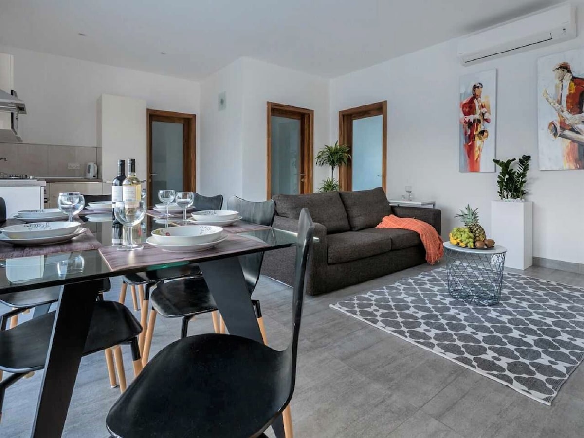 Un apartamento frente al mar en un complejo boutique ideal para familias. Construida en 1965 con auténtica piedra maltesa y recientemente renovada con elegancia de inspiración costera. Nada en la serena piscina comunitaria o en el mar cercano, relájate bajo el sol, disfruta del vino al atardecer en tu balcón privado o visita las atracciones turísticas cercanas, pero, sobre todo, relájate de las cargas de la vida cotidiana mientras te alojas en nuestro exquisito apartamento con vistas al mar sin obstáculos.