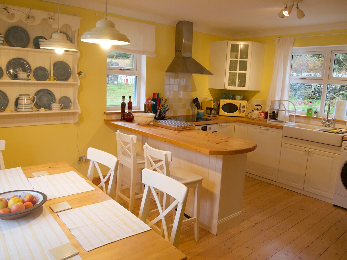 Cala Fearnadh es una casa de campo nueva, única y sin conexión a la red eléctrica en un pueblo tranquilo, con impresionantes vistas al mar de Staffa y las islas Treshnish, y más allá. ¡No hay nada como ella en ninguna parte de la isla! La energía eléctrica es de 12 voltios, generada por una combinación de energía solar y eólica. El agua proviene del tranquilo lago Assapol, que abastece a gran parte de la zona.