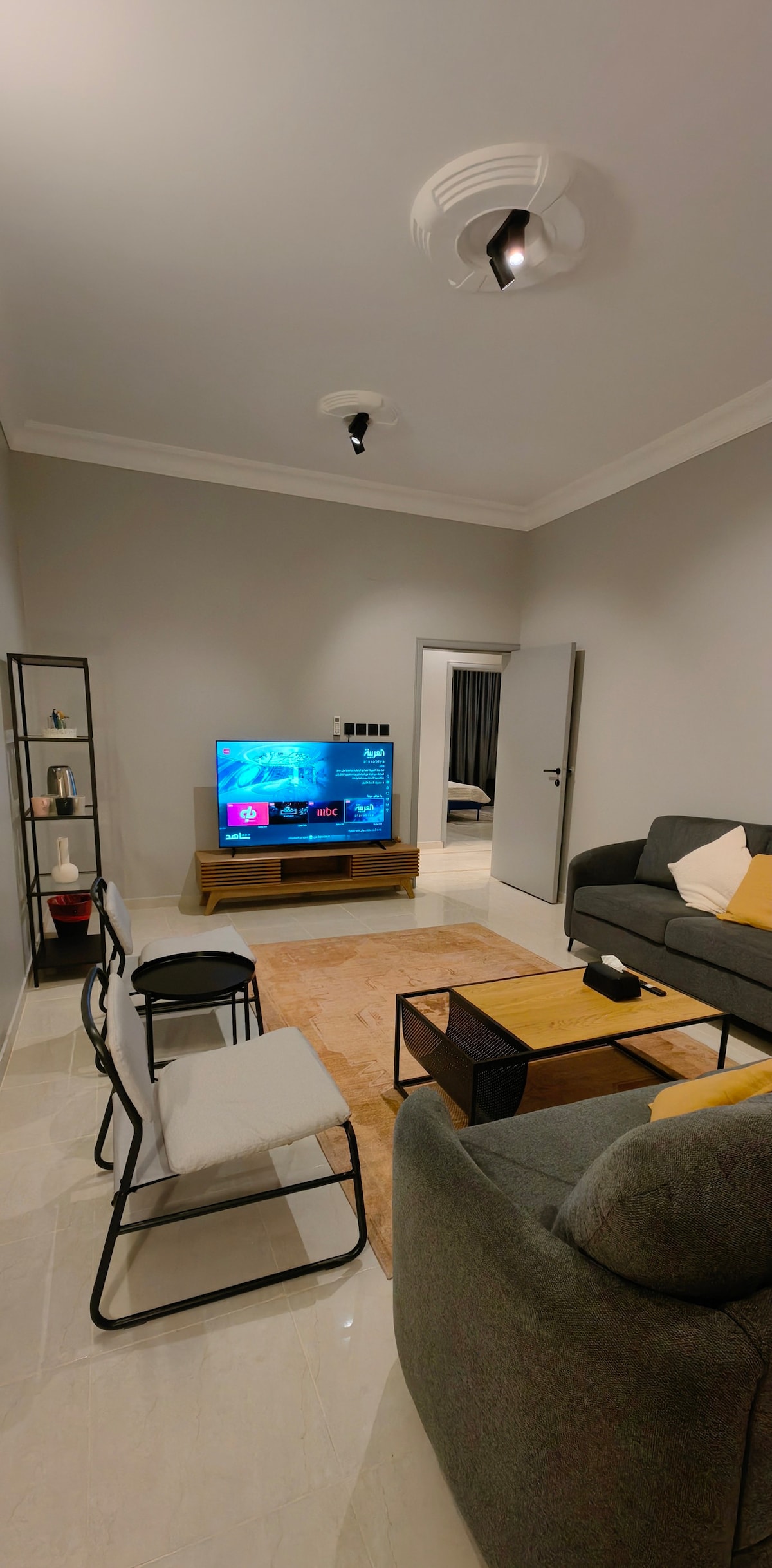 Disfruta de una estancia excepcional en este lujoso apartamento que combina el carácter moderno y la identidad cultural de la región de Qassim. Está cuidadosamente diseñado para darte una sensación de calidez y pertenencia, a través de detalles decorativos inspirados en colores y formas elegantes, mezclados con sofisticados toques de hotel. El apartamento cuenta con 3 dormitorios elegantes y cómodos, una cocina totalmente equipada con todos los utensilios y electrodomésticos necesarios para preparar tus comidas cómodamente, además de un elegante salón con muebles de lujo que reflejan el espíritu del lugar, y tres modernos baños con elegantes acabados que proporcionan el máximo confort y privacidad.