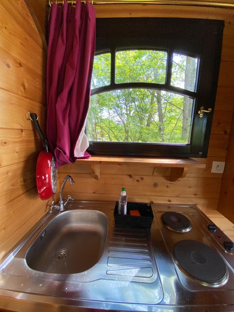 Escápate al encantador abrazo de La Petite Roulotte, donde el negocio de la vida moderna se desvanece. La cabaña de pastor tradicional ofrece una mezcla armoniosa de encanto de la vieja escuela y comodidades modernas para aquellos que anhelan el romance de acampar y un momento en el que la vida era sencilla. Nota: No podemos alojar a niños pequeños debido a la proximidad del río.