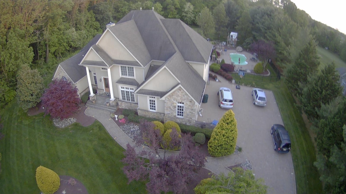 ¡Excelente entorno para familias! Superlimpia: casa de estilo rural situada en una parcela de hierba con una piscina al aire libre de gran tamaño, 4 dormitorios y 2 baños completos arriba, 1 baño completo abajo, lavadora/secadora, mucho aparcamiento, ven y relájate o aprovecha todo lo que la ubicación tiene para ofrecer (consulta la sección de vecindarios a continuación). Rodeada de Green Acres, los servicios de la zona incluyen bodegas, cervecería, golf, parque de caballos de NJ, Six Flags, senderos para caminar, tiendas, centro histórico y mucho más.