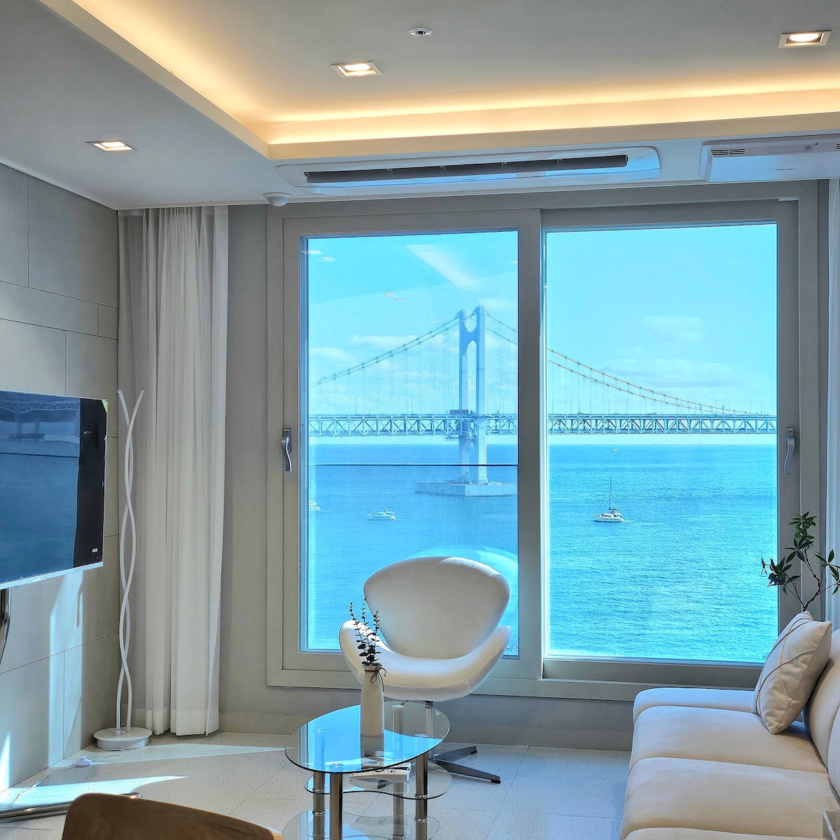 Vista al mar del puente Gwangan / Sala de estar de vidrio / Estacionamiento gratuito / A 5 minutos a pie de la playa de Gwangan / Se permiten mascotas